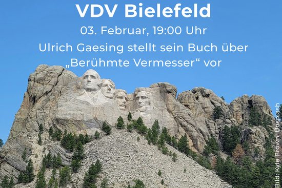 | | | |  | | | | | | | | | | Am Dienstag, den 03. Februar 2026 stellt uns Kollege Ulrich Gaesing sein Buch über „Berühmte Vermesser“ vor. Wir hören dabei sicher Interessantes und Unbekanntes - also Themen die uns fachlich besonders begeistern sollten. Die Veranstaltung beginnt um 19:00 Uhr im Büro Verwold/Masssong. Anmeldungen sind hierzu nicht erforderlich. | | | | | | | |