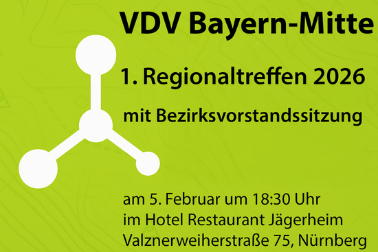 | | | |  | | | | | | | | | | Der Bezirksvorstand lädt herzlich zum 1. Regionaltreffen 2026 mit Bezirksvorstandssitzung ein. Wann: Mittwoch, 05.02.2026 ab 18:30 Uhr Wo: Hotel Restaurant Jägerheim, Valznerweiherstraße 75, 90480 Nürnberg Auch im kommenden Jahr möchten wir Ihnen wieder ein ansprechendes Programm anbieten, welches Ihnen zahlreiche Gelegenheiten zum fachlichen Austausch und zur Weiterbildung bieten… | | | | | | | |