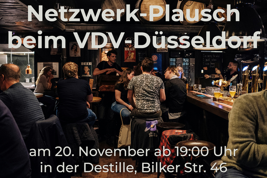 | | | |  | | | | | | | | | | Fachthemen am Stammtisch gibt's am Donnerstag (20. November) ab 19:00 Uhr in der Destille, Bilker Str. 46 in Düsseldorf. Sei dabei! #AllesImLot #myVDVdates | | | | | | | |