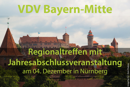 | | | |  | | | | | | | | | | Des Bezirksvorstand lädt recht herzlich zum diesjährigen Regionaltreffen mit Jahresabschlussveranstaltung ein. Wann: Dienstag, 04.12.2025 ab 18 Uhr Wo: Restaurant "Charisma", Leipziger Platz 21, 90491 Nürnberg Es empfiehlt sich die Anfahrt mit den öffentlichen Verkehrsmitteln, da das Restaurant in direkter Nachbarschaft der U-Bahn U2 Haltestelle "Nordostbahnhof" liegt. Auch mit dem… | | | | | | | |