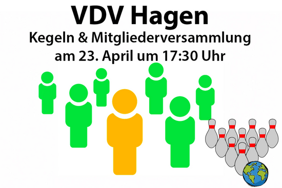 | | | |  | | | | | | | | | | Hiermit möchte Sie der VDV-Bezirksvorstand Hagen ganz herzlich zur ordentlichen Mitgliederversammlung des Bezirks einladen. Die Veranstaltung findet statt am Donnerstag, dem 23.04.2026 um 17:30 Uhr. Location: Restaurant Humpert am Höing, Fleyer Straße 123, 58097 Hagen